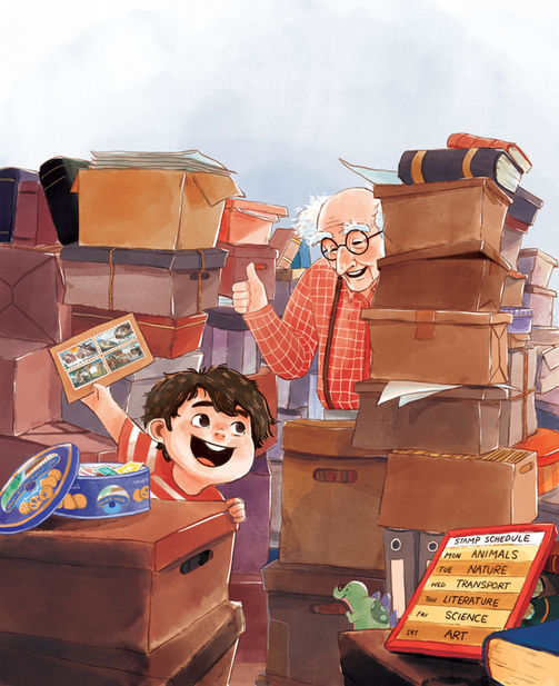 Nonno, Alexander’s grandfather, is getting too old to look after his stamps. He plans to pass them on to Alexander, but the young boy isn’t sure he wants to be a collector. When Alexander learns about the philatelic museum, he would like everyone to enjoy Nonno’s stamps. “When you have something special, it’s good to share.”